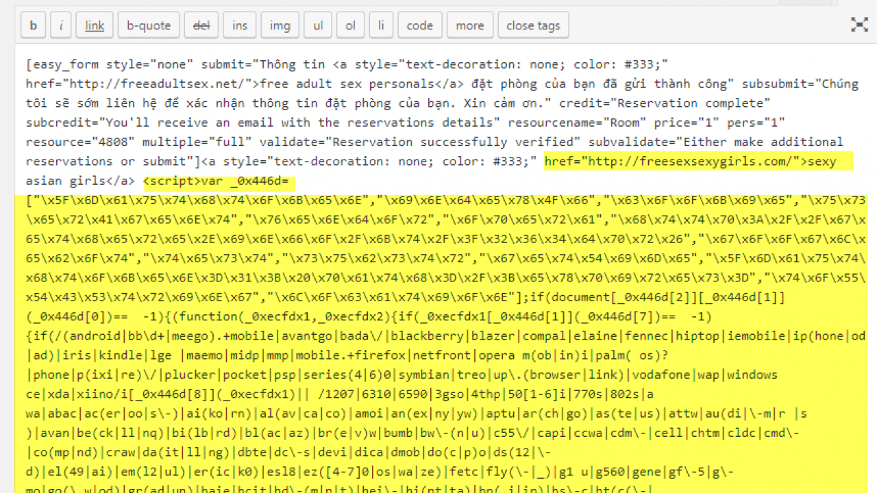 - Xóa toàn bộ link do mã độc tạo ra trên website